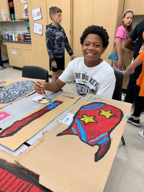 4th & 5th Grade – These grades are hard at work on their Music/Art Show projects for November! 4th graders are loving their Elvis bottle buddies, while 5th graders are really digging their cardboard guitars!