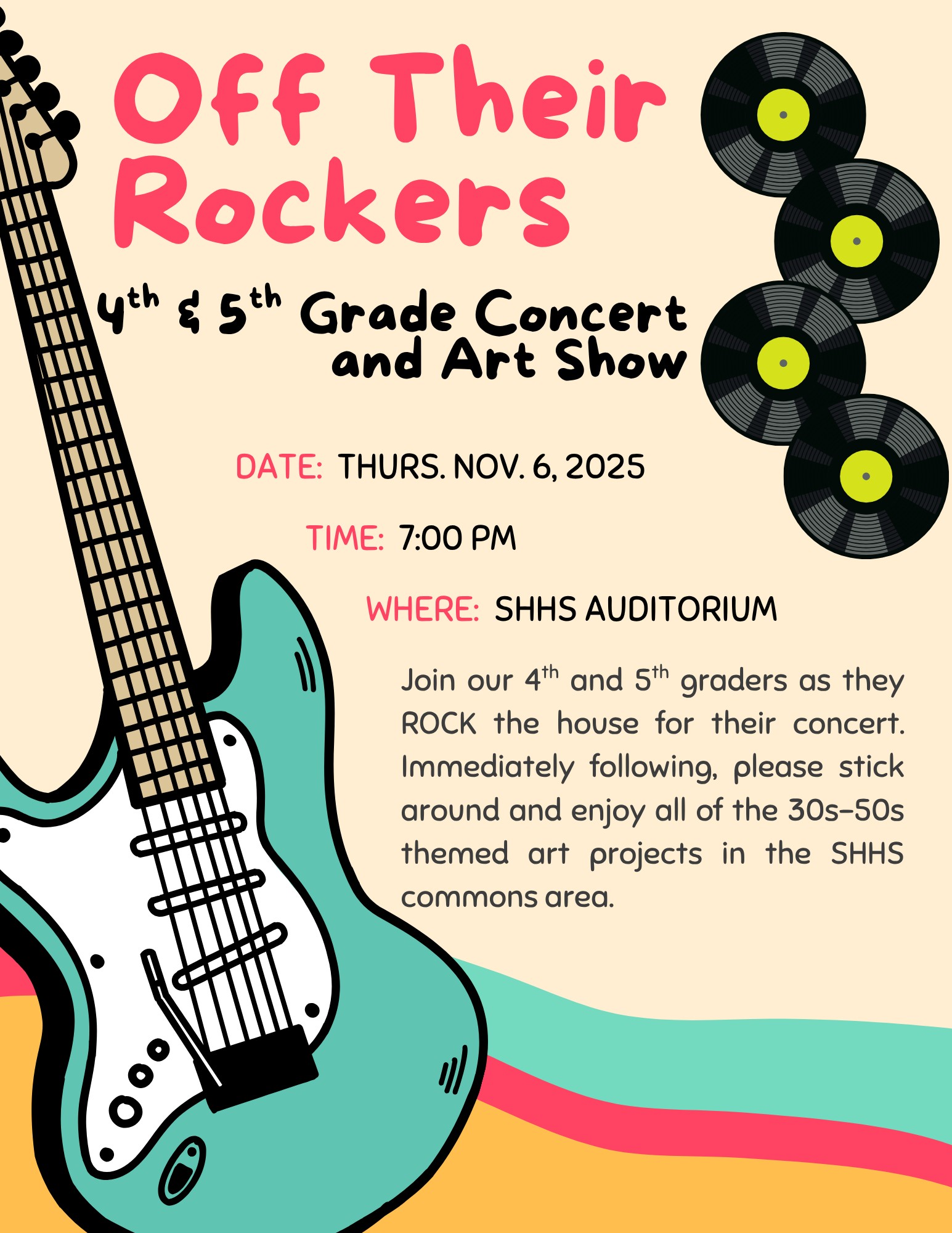 11/6- 4th and 5th Grade Music Concert at 7 pm in SHHS Auditorium